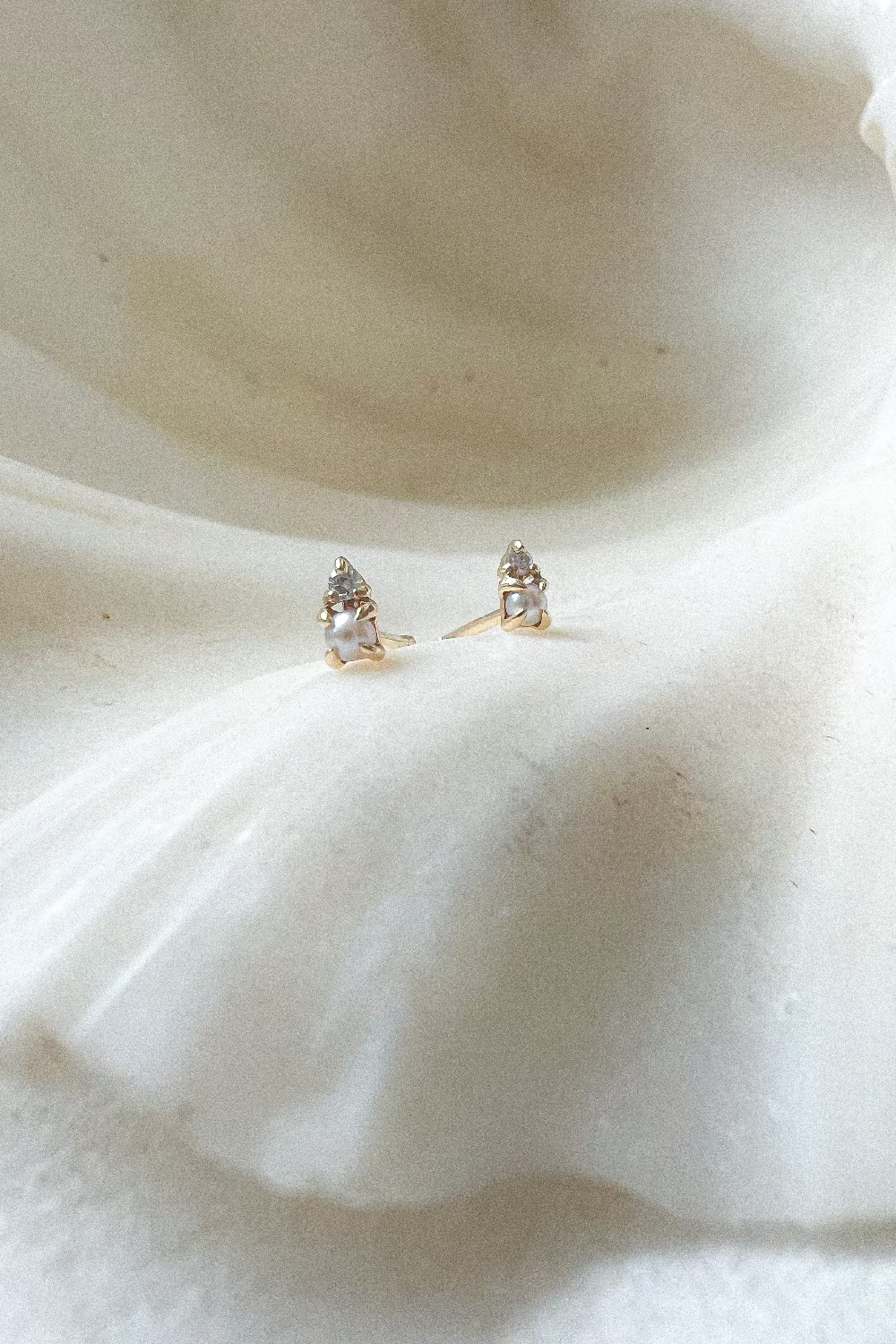 A sparkle on the shore; a saltwater drop left behind after a dip in the sea: meet our seafoam stud, a tidal duet of diamonds and pearls.