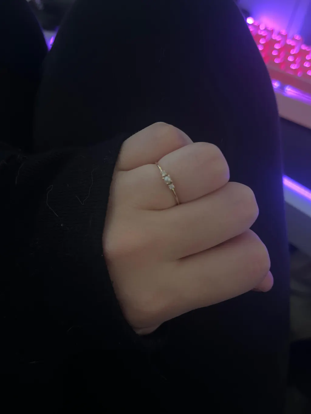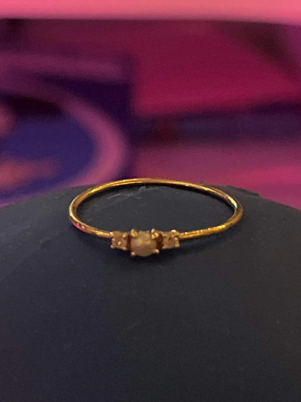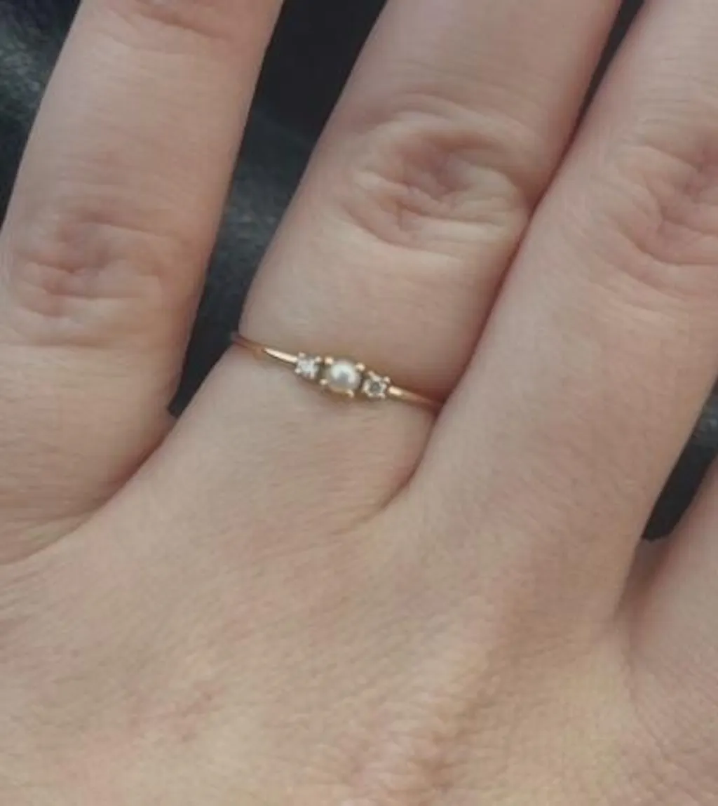 A delicate pearl framed by two sparkling diamonds, set on a solid gold band to symbolize the unbreakable bond between sea and shore.