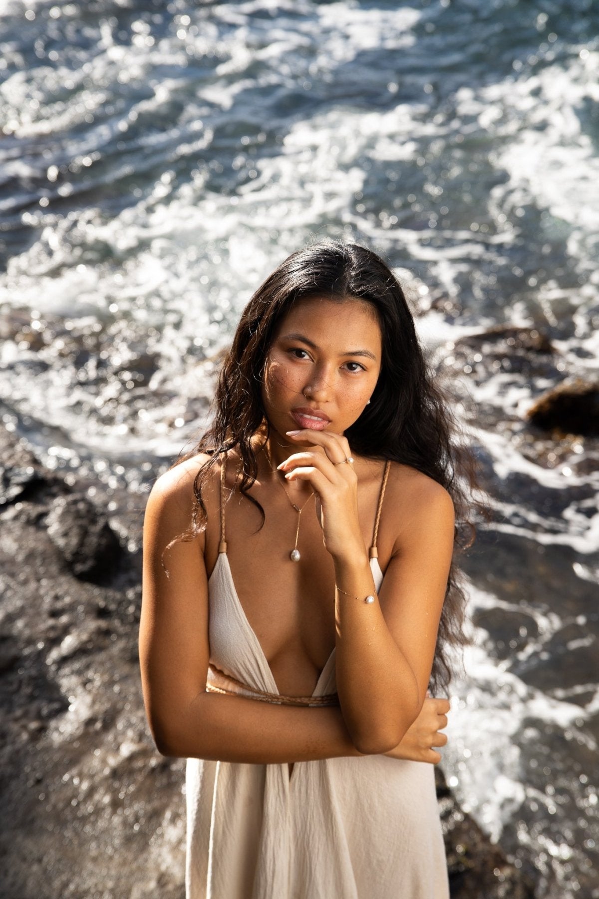 Every Maris piece ships in our sustainable paper packaging, featuring recyclable gold foil and an embossed emblem of our tridacna gigas shell. Complimentary handwritten notes, sealed with wax, are available at checkout.